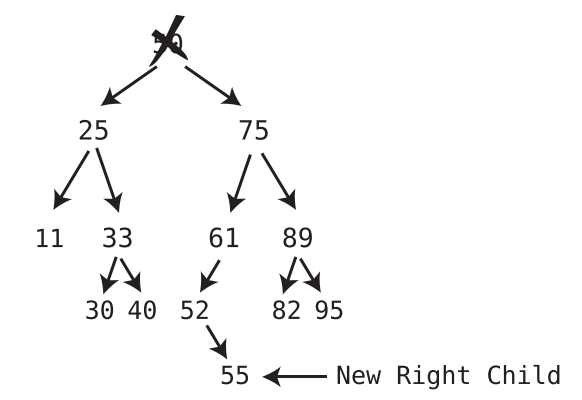 If the successor node has a right child, after plugging the successor node into the spot of the deleted node, take the former right child of the successor node and turn it into the left child of the former parent of the successor node.