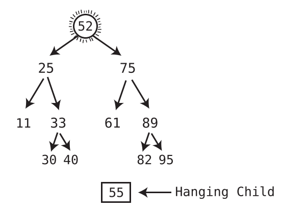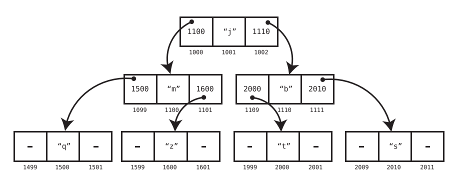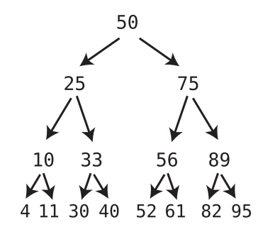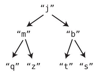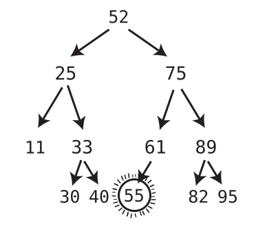Note that each node has one child with a lesser value than itself, which is depicted using a left arrow, and one child with a greater value than itself, which is depicted using a right arrow.